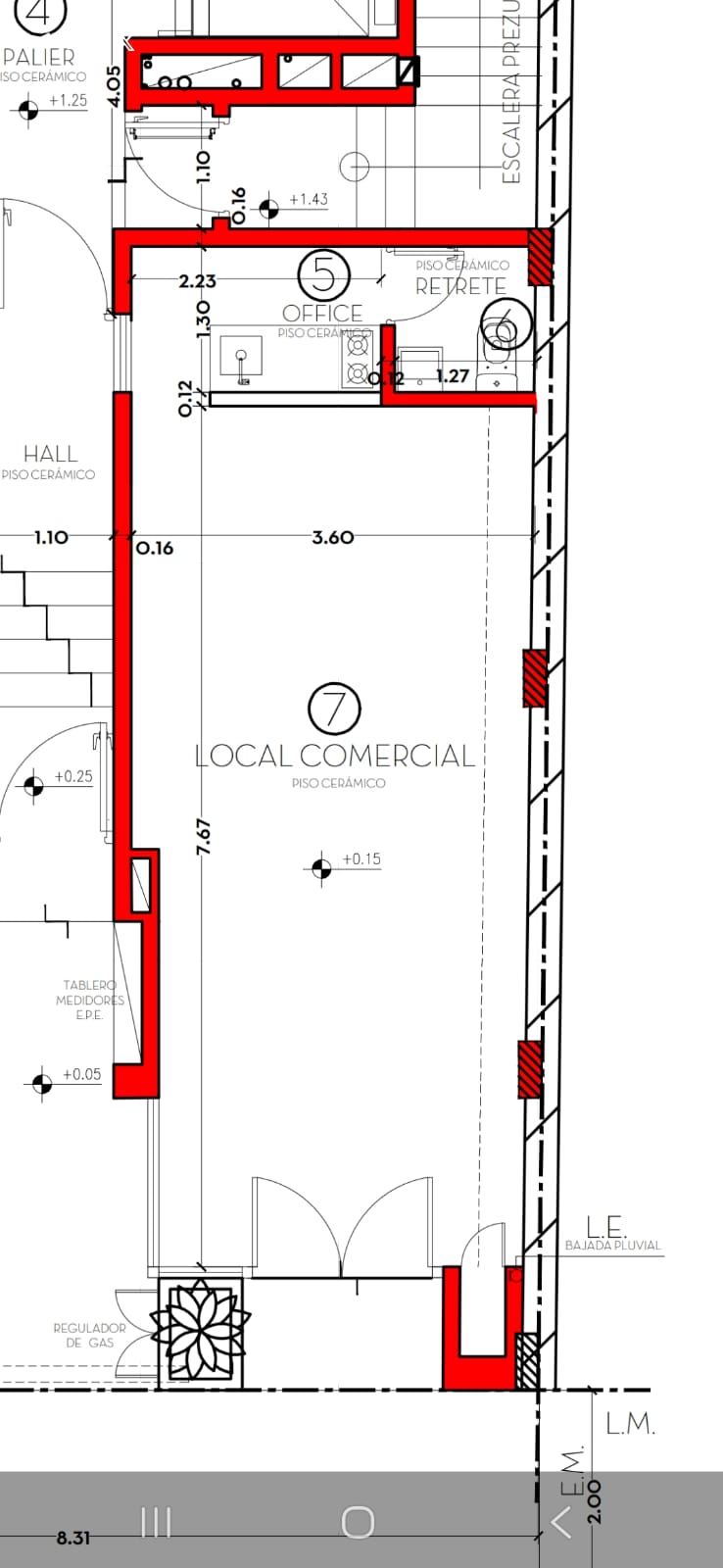 Local comercial de 35,5 mestros cuadrados, 3,6 por 9,86, kitchenette y baño.