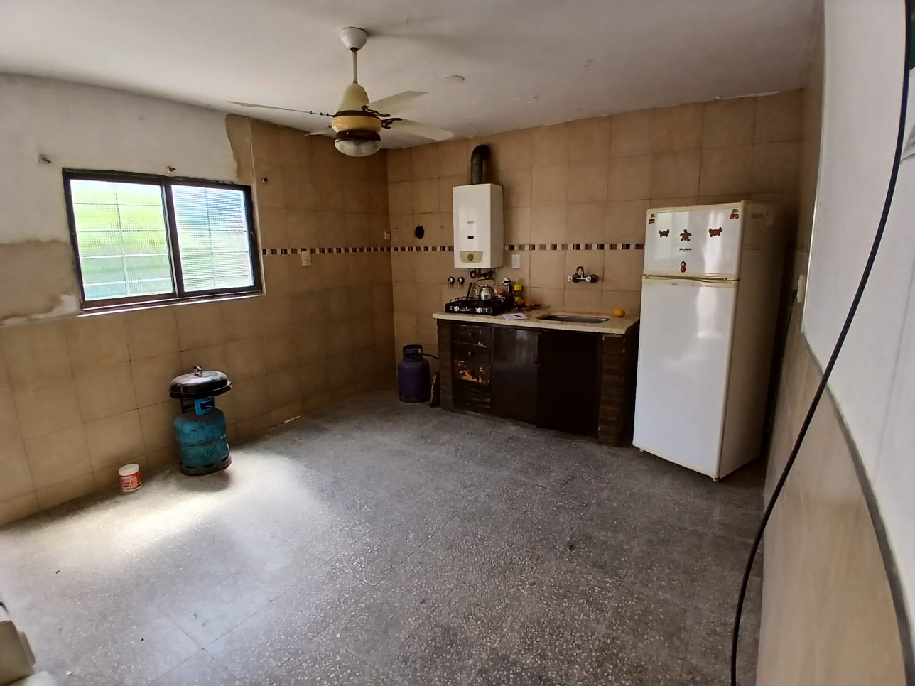 Ambiente con cocina, calefactor, aire acondicionado, ventilador de techo, termotanque,…